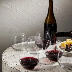 Share a bottle of your favourite vino with your dinner guests using the elegant Grand Cru 6 Piece Stemless Red Wine Glass Set by Alex Liddy!
