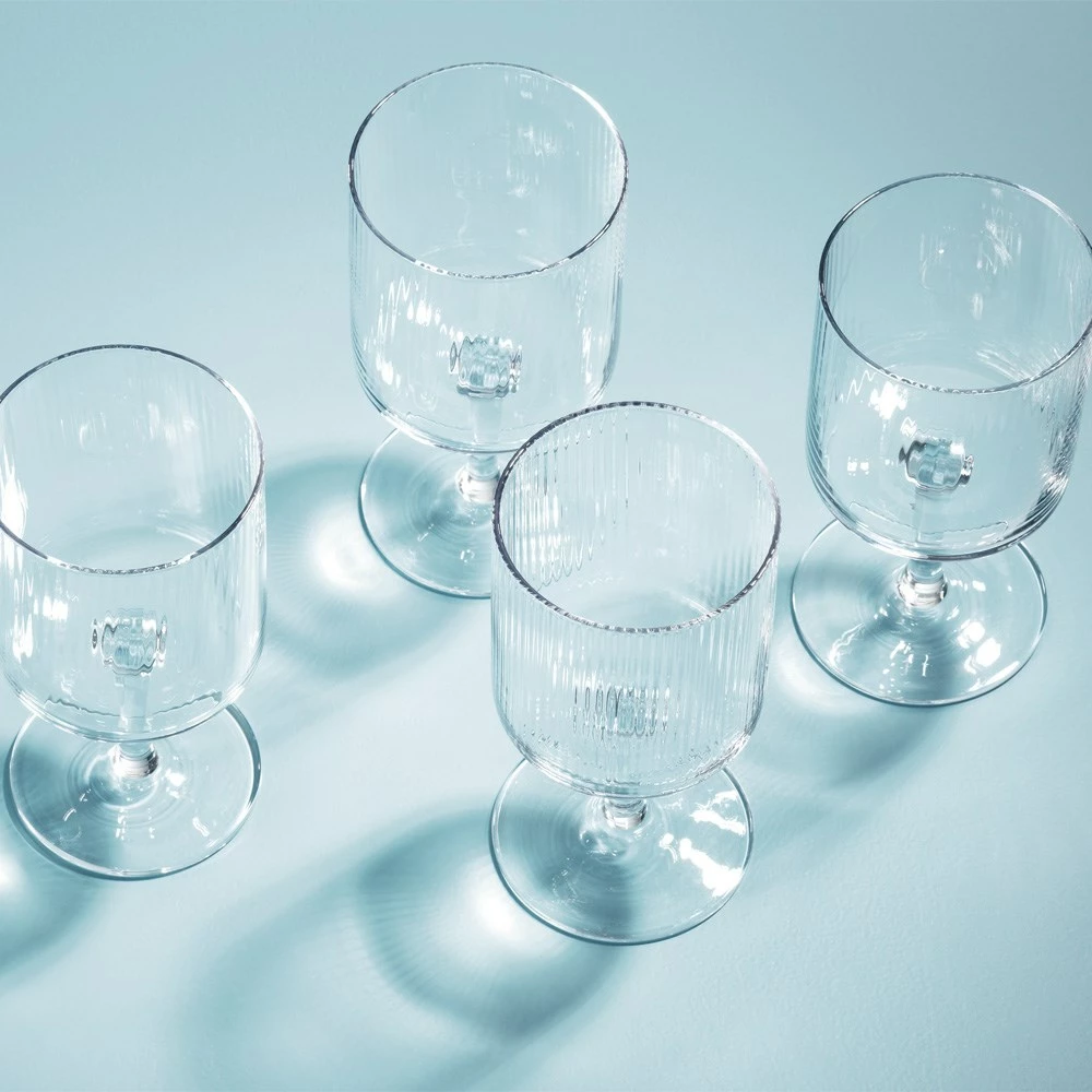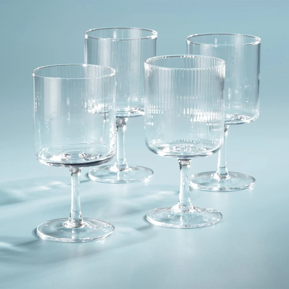 Reinvent your glass collection with the glamorous, art deco-inspired Alex Liddy Mode Set of 4 Wine Glasses 290ml and bring a refined sense of style to your next gathering. A modern take on a classic design, the Alex Liddy Mode Set of 4 Wine Glasses 290ml features a stunning vertical ribbed embossment that catches the light and tall, straight sides that are perfect for sipping on red or white wine, zesty cocktails or refreshing mocktails. Crafted from high-quality glass for endured use through many gatherings and dinner parties, they overflow with timeless elegance guaranteed to complement and upgrade the setting. Arriving beautifully boxed, the contemporary vintage Mode Set of 4 Wine Glasses 290ml from Alex Liddy are a fabulous gift to give on the occasion of a housewarming or wedding.