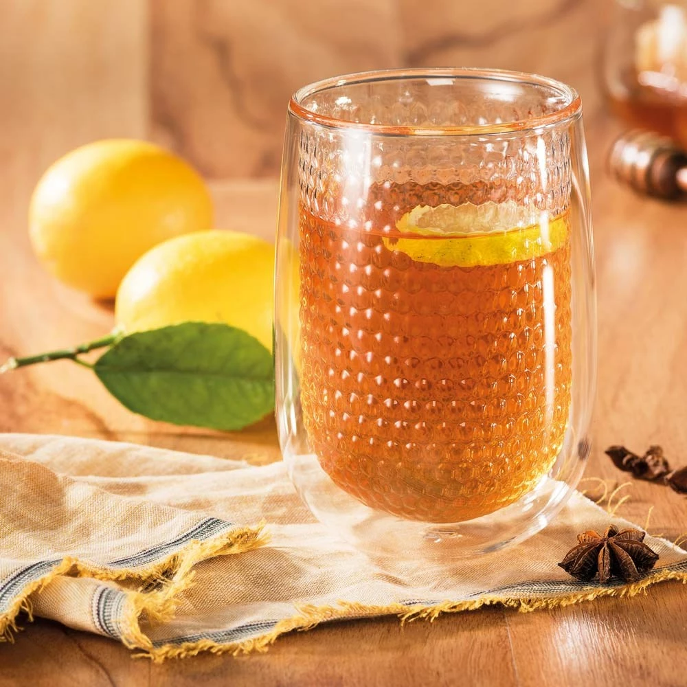 Honour your piping hot coffee or chilled iced tea with the Baccarat Barista Café Set of 2 Honeycomb Double Wall Thermal Glass Tumblers 450ml.