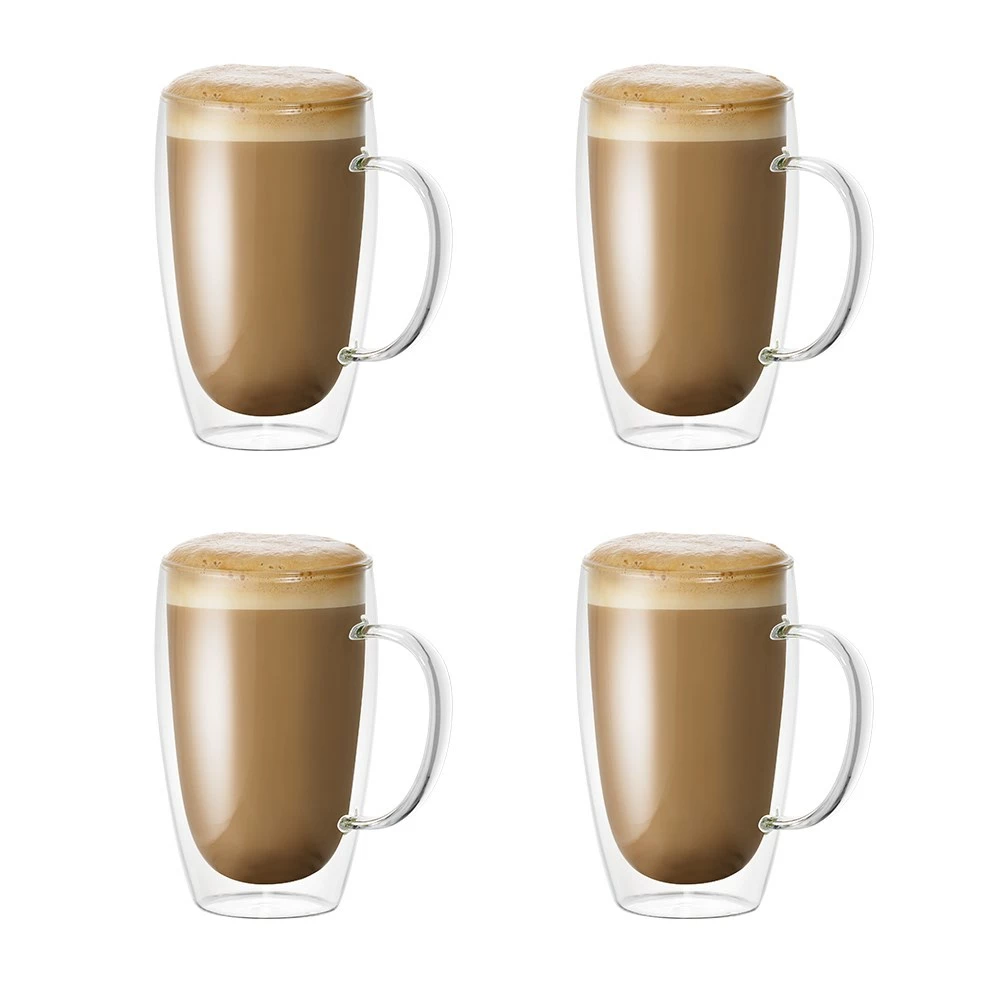 Savour your piping hot coffee or chilled iced tea with the Baccarat Barista Café Set of 4 Double Wall Handle Thermal Glass Tumblers 450ml.