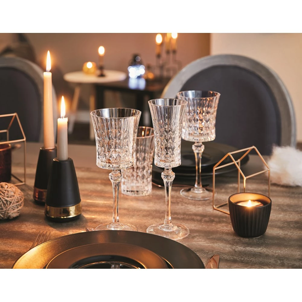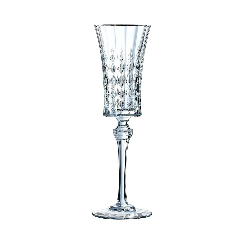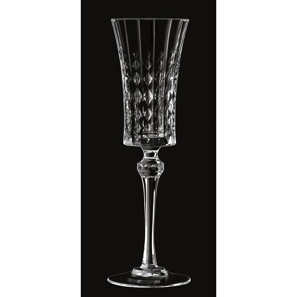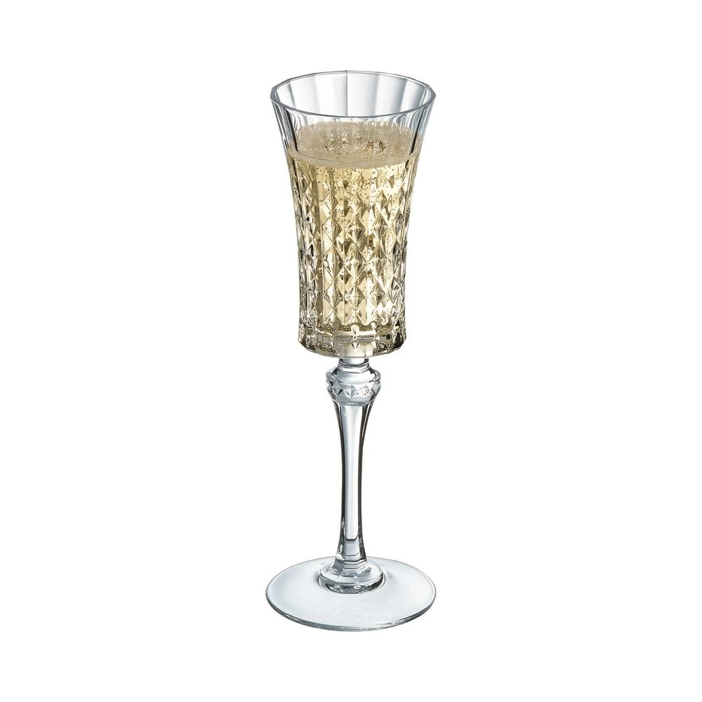 The Cristal D’Arques Paris Lady Diamond Set of 6 Flutes 150ml features an intricate display of cuts and facets that capture the light and enhance the drinks within
