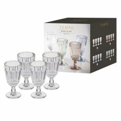 The Amara collection evokes a retro feel with a modern touch. Made from high quality crystal glass in unique shapes, the range is sure to be a go-to. The Tempa Amara Set of 4 Wine Glasses features delicate vintage colours and a hand painted gold rim, in a stylish pressed design. Recognised for their sleek and minimalist aesthetic, Tempa brings you quality, function and luxurious modern design. Whether you’re looking to step up your next occasion or bring a special touch, Amara is the perfect choice. Packed for gifting, the Tempa Amara Set of 4 Wine Glasses is an excellent gift for weddings, birthdays, and other events. Complete the look by combining the dessert bowls with the Tempa Amara Set of 4 Dessert Bowls.