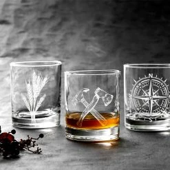 Enjoy your favourite liquor and clink together to cheer life with the Tempa Atticus Set of 2 Whisky Glasses Tools. With generous 350ml capacities, the Tempa Atticus Tools Whisky Glasses come as a set of two and feature a high quality, engraved decal of an axe and hammer on the front. Perfect for sipping on whisky and other refreshing beverages, this wonderfully designed, quality glassware set is well suited for those who enjoy a touch of adventure in their lives. Dishwasher safe for effortless cleaning, the Tempa Atticus Set of 2 Whisky Glasses Tools arrives in a coordinating box offering a fantastic gifting option for birthdays and other special occasions. These glasses are also available with Mountain, Compass and Malt decals to compliment your style.