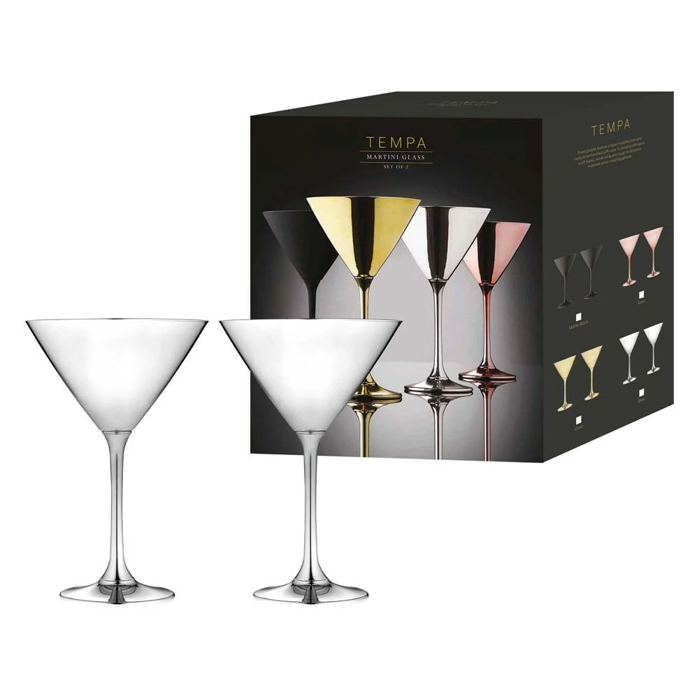 Entertain in style with the luxurious Aurora Collection. Perfectly designed to impress your guests, this range features a range of glassware and cocktail items- everything for the cocktail enthusiast. Constructed of the highest quality glass and with a unique electroplated outer, the Tempa Aurora Set of 2 Martini Glasses boast a luxurious metallic finish that will elevate the drinks you serve to the next level. Recognised for their sleek and minimalist aesthetic, Tempa brings you quality, function and luxurious modern design. Packed for gifting, the Tempa Aurora Martini Glasses are an excellent gift for weddings, birthdays, and other events. Complete the glass cabinet by combining the martini glasses with the Tempa Aurora Set of 2 Gin Glasses Silver.