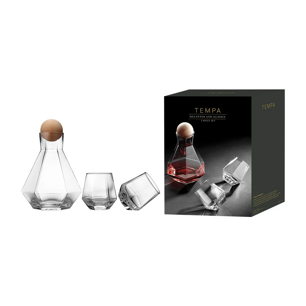 An on-trend geometric aesthetic is brought to your glass collection with the Tempa Jaxon 3 Piece Carafe & Tumbler Set