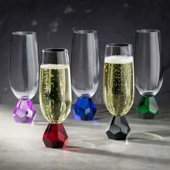 Oozing with style this collection is truly unique. Crafted from mouthblown glass, featuring a hand-cut, solid gem-shaped base and available in 5 colours, this range will make an impact. Recognised for their sleek and minimalist aesthetic, Tempa brings you quality, function and luxurious modern design. The Tempa Zhara Set of 2 Champagne Glasses are crafted with high quality crystal giving a luxurious weighted feel. Whether you’re looking to step up your next occasion or bring a special touch, Zhara is the perfect choice. Packed for gifting, the Tempa Zhara Set of 2 Champagne Glasses is an excellent gift for weddings, birthdays, and other events for any wine connoisseurs. Complete your glass cabinet by combining the wine glasses with the Tempa Zhara Set of 2 Wine Glasses.