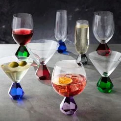Oozing with style this collection is truly unique. Crafted from mouthblown glass, featuring a hand-cut, solid gem-shaped base and available in 5 colours, this range will make an impact. Recognised for their sleek and minimalist aesthetic, Tempa brings you quality, function and luxurious modern design. The Tempa Zhara Set of 2 Wine Glasses are crafted with high quality crystal giving a luxurious weighted feel. Whether you’re looking to step up your next occasion or bring a special touch, Zhara is the perfect choice. Packed for gifting, the Tempa Zhara Set of 2 Wine Glasses is an excellent gift for weddings, birthdays, and other events for any wine connoisseurs. Complete your glass cabinet by combining the wine glasses with the Tempa Zhara Set of 2 Martini Glasses.